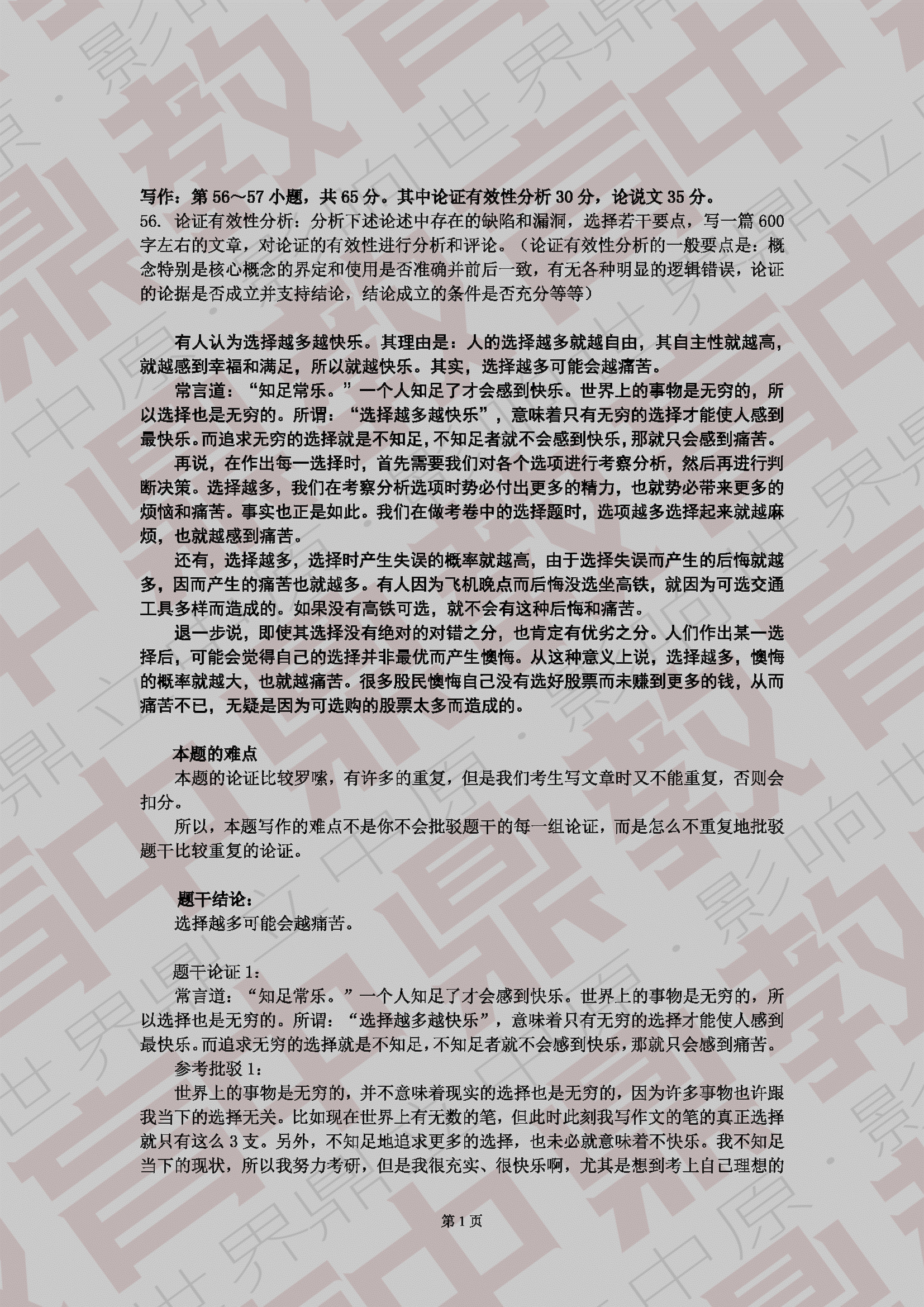 2019年管理類聯考中文寫作真題及解析: