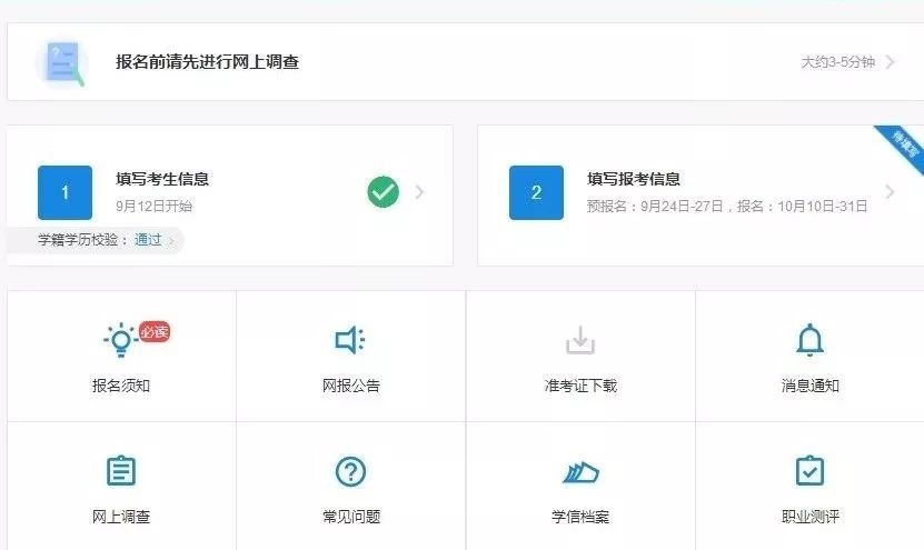 注:“學歷學籍”項,該處內容必須確保全部無誤且與自己報考畢業證上顯示信息完全一致方可,否則無法通過“學歷校驗”。